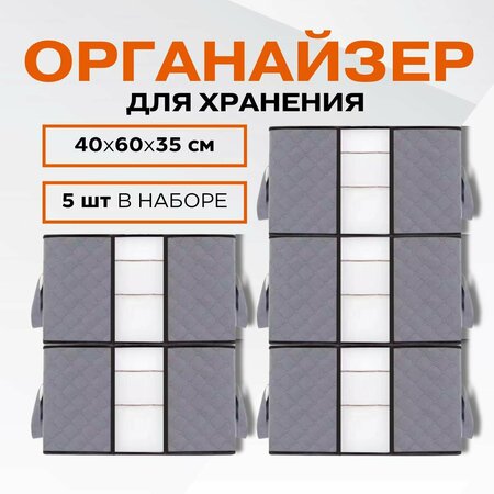 Кофры для хранения вещей на молнии, органайзеры для хранения, DNK HOME, 5 кофров, серый