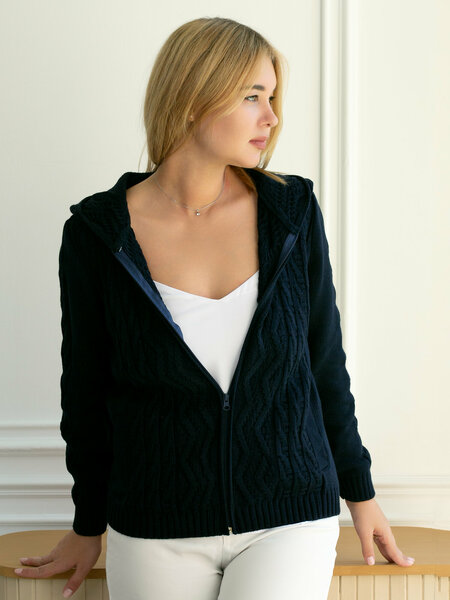 Достоинства:Очень удобная вещь, с карманами и капюшоном, легкая , вязка красивая, подошла по размеру , нравится Недостатки:Цвет немного темноват , хотелось бы поотимистичнее Комментарий:Рекомендую к покупке , и в дорогу и на прогулку и в прохладную погоду