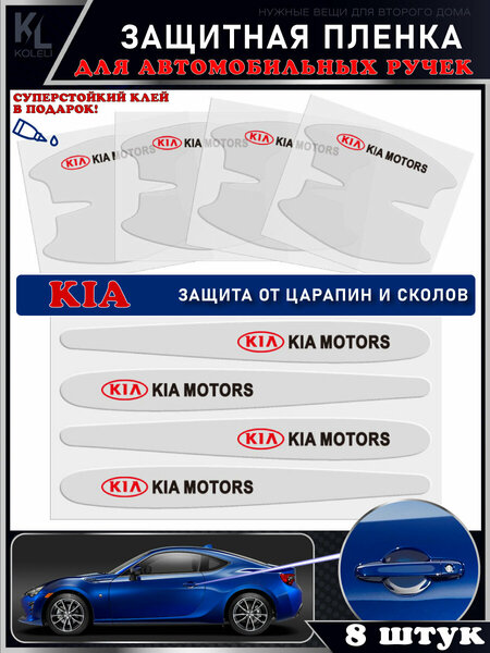 Защитные наклейки для ручек, дверей или бампера KIA - 8 штук; Накладки от царапин и сколов под ручки машины; Специальный суперсильный клей для металла и пластика - 1 шт.