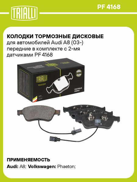 {"widgets":{"@card/ReviewBlockRatinginfo":{"/content/page/fancyPage/reviewBlock/ratingInfo":{"businessReviewCount":0,"businessRatingCount":1,"transitionId":"tr_2649811749248577810","marketText":"У всех продавцов:","ratingCountText":"1 оценка","reviewCountText":"Нет отзывов","isRobot":false,"slug":"kolodki-tormoznyye-diskovyye-peredniye-dlya-avtomobiley-audi-a8-03--v-komplekte-s-2-mya-datchikami-pf-4168-trialli"}}},"meta":{"/content/page/fancyPage/reviewBlock/ratingInfo":{"name":"@card/ReviewBlockRatinginfo"}},"collections":{"businessReviewUgc":{"1778760067":{"showMoreReviewButton":false,"showCreateReviewButton":false,"context":"eyJtb2RlbElkIjoxNzc4NzYwMDY3LCJzb3VyY2UiOiJwcm9kdWN0LW1haW4iLCJza3UiOjEwMTg2MDQ5NjkzNiwib3NrdSI6MTAyNjQzNjE5MTcxLCJvbW9kZWwiOjE3Njg2NTg1NywiYnVzaW5lc3NJZCI6NjcyNzg3fQ==","items":[],"mediaNavigationTransitionId":"tr_9566497948117028305"}}}}