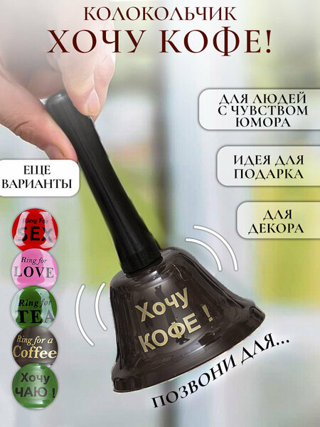 Настольный металлический колокольчик с надписью — это незаменимый аксессуар для вашего офиса и дома, на ПВЗ, на стойках ресепшен в офисах, гостиницах, барах и прочих учреждениях. Он поможет вам создать атмосферу уюта и комфорта в вашем пространстве. Благодаря своей компактности, звонок не займет много места на столе или полке. Его стильный дизайн и металлическая отделка делают его прекрасным дополнением к любому интерьеру. А классический дизайн и универсальность делают настольный звонок идеальным для любых ситуаций. На колокольчике есть надпись, которая добавит нотку юмора и индивидуальности в ваш офис или дом. Это отличный способ поднять настроение себе и своим коллегам. Этот звонок имеет звонкий звук, который не оставит вас без внимания. Вы можете использовать его как колокольчик для привлечения внимания или как игровой элемент для развлечения гостей. Он выполнен из качественных материалов и прослужит вам долгие годы. Металлический корпус делает его прочным и надёжным в использовании. Звонок легко устанавливается и не требует дополнительных проводов или подключения. Беспроводной колокол работает без батареек. Если вы ищете оригинальный с приколом и функциональный подарок для себя или своих близких, друзей, то настольный металлический звонок станет отличным выбором. Настольные колокольчики - ваши помощники в исполнении заветных желаний. Стоит только позвонить, и в любом месте можно почувствовать себя, как в сказке. Чего бы вам ни хотелось для счастья: чаю, кофе, пива, нежной любви, лёгкого поцелуя или страстного секса, - обо всём этом можно оповecтить при помощи мелодичных звуков колокольчиков. И надеемся, ваше желание сбудется очень быстро! Материал: металл. Упаковка: пластиковая прозрачная коробка. Размер упаковки: 137*75*75 мм. Размер колокольчика: 130*75*75 мм. Вес нетто: 85 гр.