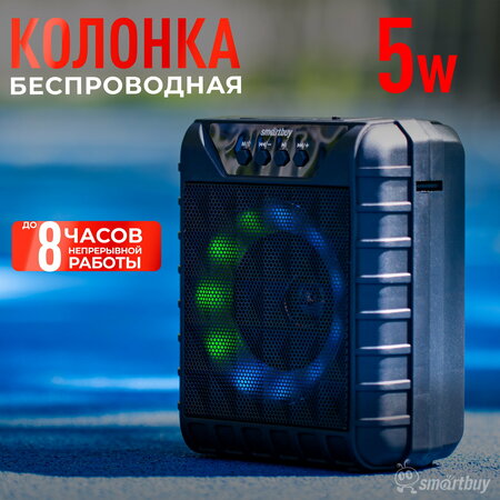 Усовершенствованная версия Bloom – хита от Smartbuy. Новая версия обладает большим динамиком 76 мм и большей выходной мощностью, что, безусловно, улучшает качество звука. Так же добавлена трендовая динамическая RGB-подсветка, установлен более совершенный Bluetooth-модуль версии 5.0. В остальном – это всё тот же любимый Bloom: MP3-плеер – чтение с USB- и MicroSD-флешек! FM-радио Bluetooth 5.0, позволяет объединять две колонки в стереопару! Качественный звук. Встроенная батарея ёмкостью 1200мАч позволяет на минималках слушать музыку на протяжении 8(!) часов. Зарядка от USB. Представляем вам портативную беспроводную колонку, которая станет вашим верным спутником в мире музыки! Эта колонка обладает высоким качеством звучания и удобством использования, что делает ее идеальным выбором для любителей музыки. Колонка портативная и стильная, что позволяет вам наслаждаться любимыми композициями в любом месте. Колонка также оснащена USB-портом, что делает ее универсальным устройством для проигрывания музыки. Просто подключите флешку и наслаждайтесь вашими композициями в любое время. Стильный дизайн этой мини колонки с подсветкой создаст уютную атмосферу в любом помещении. Вы сможете выбрать цвет подсветки по своему вкусу и наслаждаться музыкой в стильном исполнении, создавая особую атмосферу. Эта портативная колонка обладает мощным звучанием и глубокими басами, что позволяет вам наслаждаться качественным звуком в любых условиях. Благодаря компактным размерам, вы сможете брать ее с собой повсюду и делиться отличным звучанием с друзьями. Не упустите возможность приобрести эту уникальную портативную колонку Bluetooth и USB-портом - ваша музыка будет звучать ярче и насыщеннее, а вы сможете создавать особую атмосферу вокруг себя.