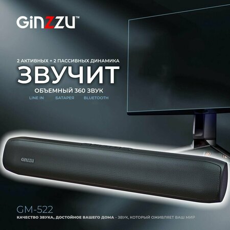 Портативная акустика Ginzzu GM-522 - это стильное и функциональное решение для любителей качественного звука. Динамики размером 2 х 2 дюйма и два пассивных излучателя обеспечивают мощное и чистое звучание. Диапазон воспроизводимых частот составляет от 80 Гц до 20 КГц, что позволяет наслаждаться музыкой различных жанров. Bluetooth 5.3 обеспечивает стабильное и быстрое подключение к различным устройствам, а также позволяет использовать колонку в качестве гарнитуры. Встроенный аудио-плеер поддерживает USB-flash, что позволяет воспроизводить музыку с вашего накопителя. Аккумулятор емкостью 2000mAh обеспечивает длительное время работы, а порт Type C позволяет быстро зарядить колонку. Магнитное экранирование защищает от помех и искажений. Корпус колонки выполнен из прочного пластика, а цвет - черный матовый. Вес колонки составляет всего 0,698 кг, что делает ее удобной для переноски. Выбирая портативную акустику Ginzzu GM-522, вы получаете качественный звук, удобство использования и стильный дизайн.