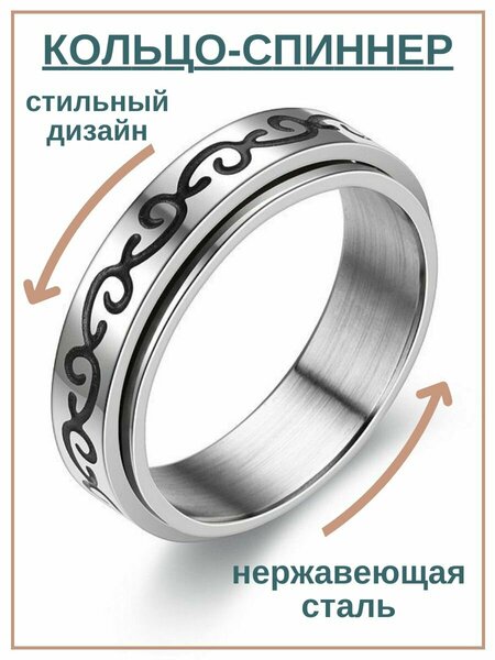 Кольцо спиннер для мужчин и для женщин вращающееся, отлично отвлечет от повседневных проблем. Кольцо антистресс поможет снять эмоциональное напряжение, сконцентрироваться. Элегантный дизайн кольца подойдет как мужчинам, так и женщинам. Как определиться с размером кольца: Первый способ: диаметр кольца - это и есть размер кольца, найдите какое-нибудь кольцо дома, которое подходит вам по размеру, и измерьте его внутренний диаметр, если диаметр кольца будет равен размеру кольца в карточке товара, то кольцо из карточки Вам подойдет. Например: диаметр Вашего кольца 19 мм, значит Вам нужно выбрать в карточке товара размер 19. Второй способ: Ниткой обкрутите палец, затем полученную длину нитки в миллиметрах разделите на 3.14, это Ваш размер кольца. Пример: окружность пальца 56 мм, 56/3.14=17.83, значит размер кольца выбираем 18. Так же, при выборе размера кольца, нужно учитывать, что пальцы в течение дня меняют размер, с утра они стройнее чем вечером.