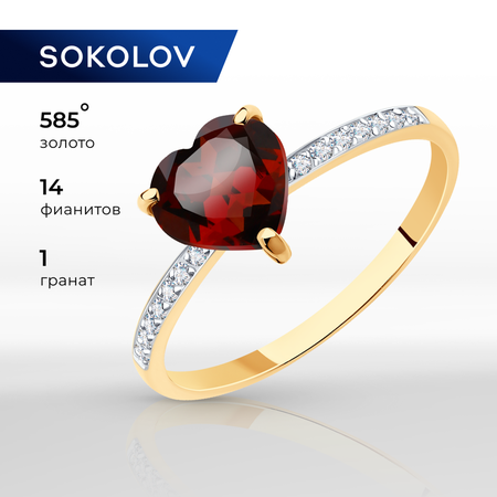 Оригинальное, изящное кольцо от бренда SOKOLOV из красного золота 585 пробы с фианитами и гранатом - это лучший готовый подарок для взрослых женщин и девушек - подростков! Блестящее украшение необычной формы станет символом вечной любви и украсит руку невесты. Золотое колечко выполнено с использованием высококачественного металла, обладающего прочностью и долговечностью, чтобы служить вам долгие годы. Широкий ассортимент больших и маленьких размеров для разных пальцев взрослых женщин и молодых девушек. Модный дизайн золотого женского кольца, делают это ювелирное изделие идеальным выбором для современных леди. Вставки из фианитов и граната добавляют ему блеска: они прекрасно отражают свет при каждом движении руки. Грани подчеркивают их сияние и создают завораживающий эффект, который приковывает взгляды окружающих. Тонкое и стильное кольцо с камнем: станет незабываемым сюрпризом для девушки и будет прекрасным дополнением к ее вечернему образу. Подарите незабываемый момент на годовщину отношений, день рождения, выпускной дочке или юбилей. Изделие очень простое в уходе: можно просто протереть его тряпочкой из микрофибры. Изысканное и красивое ювелирное украшение с безупречным дизайном и великолепным блеском позволит создать незабываемый образ. Благодаря своей универсальности, подойдет как для повседневного образа в офис, так и для особых случаев. Вы сможете подчеркнуть свою индивидуальность и выразить настроение при носке необычного украшения. Сочетание изысканности и минимализма вызовет восхищенные взгляды окружающих. Высокое качество красного золота обеспечивает надежность и долговечность украшения, а фианиты и гранат, благодаря своей яркой игре света, придает ему неповторимое сияние и привлекательность. Поставляется в комплекте с элегантной подарочной упаковкой, что делает его идеальным подарком для любого праздника. Изящное сочетание классического дизайна и современных трендов делает его непревзойденным ювелирным изделием. Кольцо обручальное 585 пробы благодаря трендовому дизайну станет неотъемлемой частью вашего образа и подчеркнет ваш неповторимый стиль. Вес товара в карточке является средним и может отличаться от веса аксессуара, который вы приобретаете в нашем магазине. Гарантия на брендовое ювелирное изделие составляет шесть месяцев со дня передачи товара потребителю. Произведено в России.
