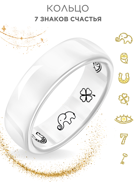 Оригинальное керамическое кольцо с гравировкой "7 знаков счастья" белового цвета, шириной 6 мм - кольцо из ювелирной керамики на внутренней стороне которого расположены 7 специальных символов, добавляющих украшению особый шарм и персональный характер. Почему стоит купить именно это белое керамическое кольцо c гравировкой "7 знаков счастья": - Качественная ювелирная керамика — устойчива к царапинам и истиранию, не разобьется при падении, не теряет цвет от ультрафиолета, не боится воды. - Гипоаллергенный материал — безопасно для кожи, не вызывает раздражений. - Лазерная гравировка - изображение на поверхности выжигается, поэтому его невозможно стереть или испортить при трении о кожу, одежду или другие бытовые предметы. - Современный дизайн — подчеркнет ваш стиль, добавит образу лаконичности. - Универсальное украшение: как парные кольца для друзей и влюбленных пар, как самостоятельное украшение: кольцо женское и кольцо мужское, как дополнительный аксессуар к ювелирным изделиям. Выражайте свою индивидуальность каждый день, добавляя нотку уникальности в свой образ. - Стильная подарочная упаковка делает это белое керамическое кольцо "7 знаков счастья" готовым к вручению подарком без дополнительных усилий. Парные кольца для Ваших близких, родных, друзей, коллег это прекрасный подарок на любой праздник и случай.