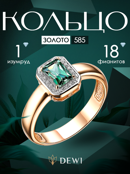 Кольцо с изумрудами и фианитами из золота 585 пробы - это изысканное украшение, которое станет прекрасным дополнением к Вашему образу. Кольцо выполнено из красного золота 585 пробы, что гарантирует его долговечность и устойчивость к истиранию. Кольцо украшено двумя видами вставок: изумрудами и фианитами. Изумруды представлены в форме октаэдра 6х4 мм и имеют массу 0,095 карата, что придает украшению глубину и насыщенность цвета. Фианиты, выполненные в белом цвете, добавляют изделию блеск и сияние. Кольцо с изумрудами и фианитами от Dewi - это не только красивое украшение, но и стильный аксессуар, который подчеркнет Ваш изысканный вкус и станет отличным подарком для близкого человека.