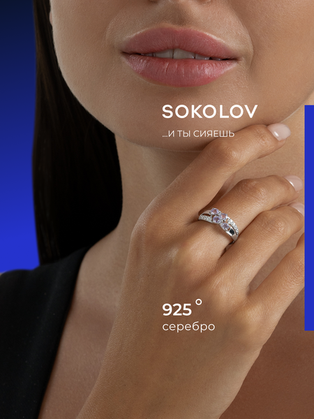 Серебряное кольцо женское 925 пробы с камнями фианитами и аметистами, серебро SOKOLOV это отличный готовый подарок для взрослых женщин и девушек. Серебряное колечко 925 пробы выполнено с использованием высококачественного драгоценного металла, обладающего прочностью и долговечностью, чтобы служить вам долгие годы. Широкий ассортимент больших и маленьких размеров для разных пальцев взрослых женщин и молодых девушек. Модный дизайн серебряного женского кольца делает это ювелирное изделие идеальным выбором для современных леди. Грани кольца подчеркивают сияние и создают завораживающий эффект, который приковывает взгляды окружающих. Серебряное женское кольцо станет незабываемым сюрпризом для девушки и будет прекрасным дополнением к ее вечернему образу. Подарите незабываемый момент на годовщину отношений, день рождения, выпускной дочке или юбилей. Изделие очень простое в уходе: можно просто протереть его тряпочкой из микрофибры. Изысканное и красивое ювелирное украшение с безупречным дизайном и великолепным блеском позволит создать незабываемый образ. Благодаря своей универсальности, подойдет как для повседневного образа в офис, так и для особых случаев. Вы сможете подчеркнуть свою индивидуальность и выразить настроение при носке необычного украшения. Сочетание изысканности и минимализма вызовет восхищенные взгляды окружающих. Высокое качество серебра 925 пробы обеспечивает надежность и долговечность украшения, придает ему неповторимое сияние и привлекательность. Поставляется в комплекте с элегантной подарочной упаковкой, что делает его идеальным подарком для любого праздника. Изящное сочетание классического дизайна и современных трендов делает его непревзойденным ювелирным изделием. Кольцо из серебра 925 пробы благодаря трендовому дизайну станет неотъемлемой частью вашего образа и подчеркнет ваш неповторимый стиль. Вес товара на карточке является средним и может отличаться от веса изделия, которое вы приобретете у нас. Гарантия на ювелирное украшение составляет шесть месяцев со дня его приобретения. Произведено в России.
