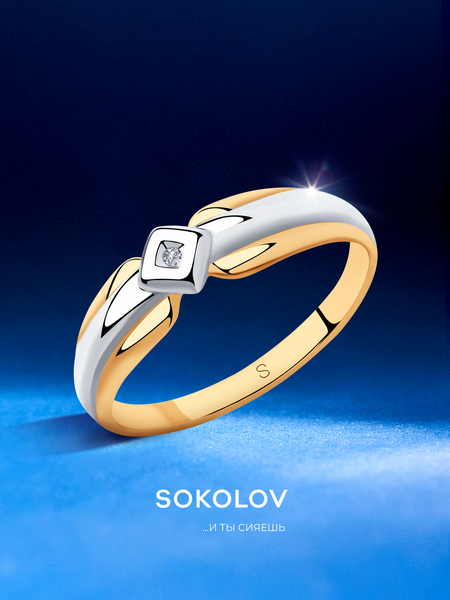 Серебряное кольцо с бриллиантом - роскошное дополнение к женственному образу. Ювелирное изделие выполнено из золоченого серебра 925 пробы, украшено нежным бриллиантом. Базовая модель серебрянного кольца доступна в разных размерах, чтобы вы могли выбрать идеально подходящий для комфортного ношения на пальце аксессуар. Многослойное дизайнерское кольцо золотистого цвета - классика стиля. Роскошное ювелирное украшение будет радовать вас необычно нежным сиянием и прозрачными переливами - бриллианта белого цвета при искусственном вечернем или дневном освещении, эстетично дополнять наряд для вечернего выхода, повседневный в стиле кэжуал для прогулки с подружками или свидания с любимым. Широкое кольцо из золоченого серебра может выступать в качестве красивого помолвочного, использоваться для повседневной носки или для особых случаев. Модное и стильное колечко 925 пробы в брендовой подарочной упаковке - оригинальный новогодний подарок, универсальный презент на день рождения или юбилей. Дарите его младшей или старшей сестре, взрослой дочке или внучке - подростку на Новый год или Рождество, вручайте на любой праздник! Трендовая модель серебряного кольца 925 подарит праздничное настроение, ее будет приятно получить в качестве милого знака внимания и взрослой женщине, и молодой девушке. Качественное ювелирное изделие с покрытием из золота и родия будет в течение долгого времени радовать вас безупречным внешним видом при условии соблюдения рекомендаций по уходу. Ювелирные изделие бренда SOKOLOV оснащены биркой (паспорт модели), которая содержит всю необходимую информацию о кольце. На оборотной стороне указаны индивидуальный артикул и штрихкод, по которому можно проверить подлинность изделия на официальном сайте производителя. Клеймение серебряных украшений происходит на добровольной основе, поэтому проба может отсутствовать. Вес товара в карточке является средним и может отличаться от веса аксессуара, который вы приобретаете в нашем магазине. Гарантия на брендовое ювелирное изделие составляет шесть месяцев со дня передачи товара потребителю. Произведено в России.