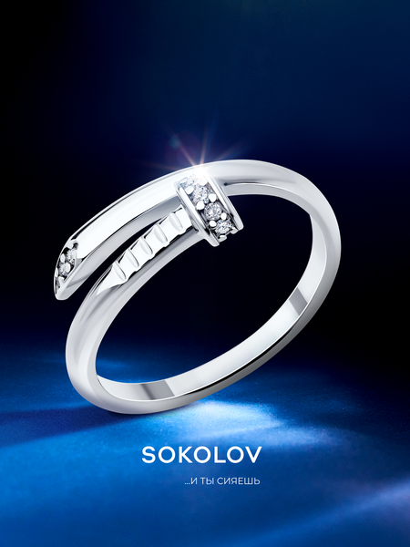 Серебряное кольцо с фианитами - роскошное дополнение к женственному образу. Ювелирное изделие выполнено из родированного серебра 925 пробы. Базовая модель серебрянного кольца доступна в разных размерах, чтобы вы могли выбрать идеально подходящий для комфортного ношения на пальце аксессуар. Многослойное дизайнерское кольцо серебристого цвета - классика стиля. Роскошное ювелирное украшение будет радовать вас необычно нежным сиянием и прозрачными переливами - фианитов белого цвета при искусственном вечернем или дневном освещении, эстетично дополнять наряд для вечернего выхода, повседневный в стиле кэжуал для прогулки с подружками или свидания с любимым. Тонкое кольцо из родированного серебра может выступать в качестве красивого помолвочного, использоваться для повседневной носки или для особых случаев. Модное и стильное колечко 925 пробы в брендовой подарочной упаковке - оригинальный новогодний подарок, универсальный презент на день рождения или юбилей. Дарите его младшей или старшей сестре, взрослой дочке или внучке - подростку на Новый год или Рождество, вручайте на любой праздник! Трендовая модель серебряного кольца 925 подарит праздничное настроение, ее будет приятно получить в качестве милого знака внимания и взрослой женщине, и молодой девушке. Качественное ювелирное изделие с покрытием из родия будет в течение долгого времени радовать вас безупречным внешним видом при условии соблюдения рекомендаций по уходу. Ювелирные изделие бренда SOKOLOV оснащены биркой (паспорт модели), которая содержит всю необходимую информацию о кольце. На оборотной стороне указаны индивидуальный артикул и штрихкод, по которому можно проверить подлинность изделия на официальном сайте производителя. Клеймение серебряных украшений происходит на добровольной основе, поэтому проба может отсутствовать. Вес товара в карточке является средним и может отличаться от веса аксессуара, который вы приобретаете в нашем магазине. Гарантия на брендовое ювелирное изделие составляет шесть месяцев со дня передачи товара потребителю. Произведено в России.