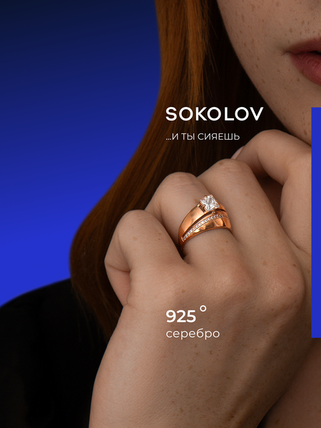 Серебряное кольцо с фианитами - роскошное дополнение к женственному образу. Ювелирное изделие выполнено из золоченого серебра 925 пробы, украшено нежными дорожками из фианитов. Базовая модель серебряного кольца доступна в разных размерах, чтобы вы могли выбрать идеально подходящий для комфортного ношения на пальце аксессуар. Многослойное дизайнерское кольцо золотистого цвета - классика стиля. Роскошное ювелирное украшение будет радовать вас необычно нежным сиянием и прозрачными переливами - фианитов белого цвета при искусственном вечернем или дневном освещении, эстетично дополнять наряд для вечернего выхода, повседневный в стиле кэжуал для прогулки с подружками или свидания с любимым. Широкое кольцо из золоченого серебра может выступать в качестве красивого помолвочного, использоваться для повседневной носки или для особых случаев. Модное и стильное колечко 925 пробы в брендовой подарочной упаковке - оригинальный новогодний подарок, универсальный презент на день рождения или юбилей. Дарите его младшей или старшей сестре, взрослой дочке или внучке - подростку на Новый год или Рождество, вручайте на любой праздник! Трендовая модель серебряного кольца 925 подарит праздничное настроение, ее будет приятно получить в качестве милого знака внимания и взрослой женщине, и молодой девушке. Качественное ювелирное изделие с покрытием из золота будет в течение долгого времени радовать вас безупречным внешним видом при условии соблюдения рекомендаций по уходу. Ювелирные изделие бренда SOKOLOV оснащены биркой (паспорт модели), которая содержит всю необходимую информацию о кольце. На оборотной стороне указаны индивидуальный артикул и штрихкод, по которому можно проверить подлинность изделия на официальном сайте производителя. Клеймение серебряных украшений происходит на добровольной основе, поэтому проба может отсутствовать. Вес товара в карточке является средним и может отличаться от веса аксессуара, который вы приобретаете в нашем магазине. Гарантия на брендовое ювелирное изделие составляет шесть месяцев со дня передачи товара потребителю. Произведено в России.