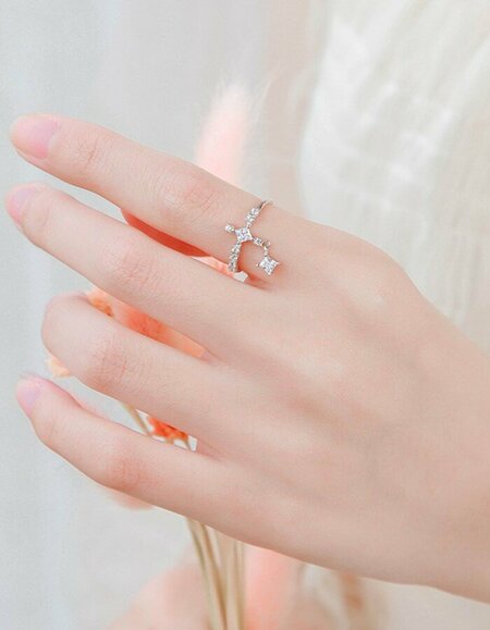 Достоинства:Красивая упаковка, качественное украшение, фото соответствует реальному изделию. Очень удобно сделано то, что кольцо можно подогнать под любой размер пальцев не прикладывая при этом особых усилий. В подарок вообще отличная вещь
