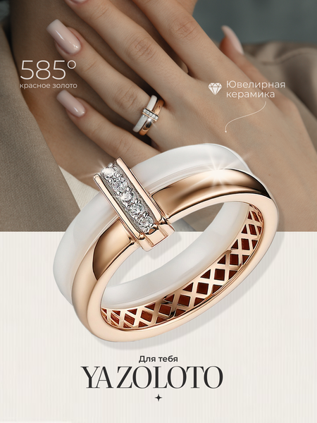 Кольцо YA ZOLOTO, красное золото, 585 проба, керамика, фианит