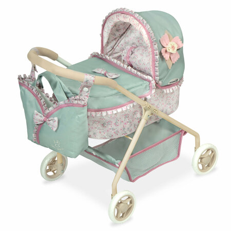 Коляска для кукол люлька DeCuevas Toys с аксессуарами и съемной сумкой представляет собой новинку серии Прованс. Она подойдет для девочек от 3 до 7 лет и вмещает куклу размером до 38 см. Дизайн коляски выполнен в мягких пастельных оттенках зеленого и розового цветов, напоминающих о разнообразии цветов и растений юга Франции. Стиль Прованс проявляется в деталях, таких как цветочные орнаменты, рюши и кружева в декоре. Коляска оснащена люлькой классической формы с откидным капюшоном округлой формы и колесами современного дизайна, обеспечивающими мягкий ход и мобильность. Рама изготовлена из металла и снабжена текстильной корзиной. Ручка с мягкой, нескользящей накладкой для рук. В комплекте с коляской идут матрас и подушечка с узором в цвет коляски, а также съемная сумка в цвет коляски, которая может использоваться как самостоятельный аксессуар – детская сумочка. Высота ручки составляет 56 см, что делает коляску удобной для использования девочками разного возраста. DeCuevas Toys – это испанский бренд, который создает игрушки в гармонии с последними веяниями моды и с уважением к классическим дизайнам и традициям.