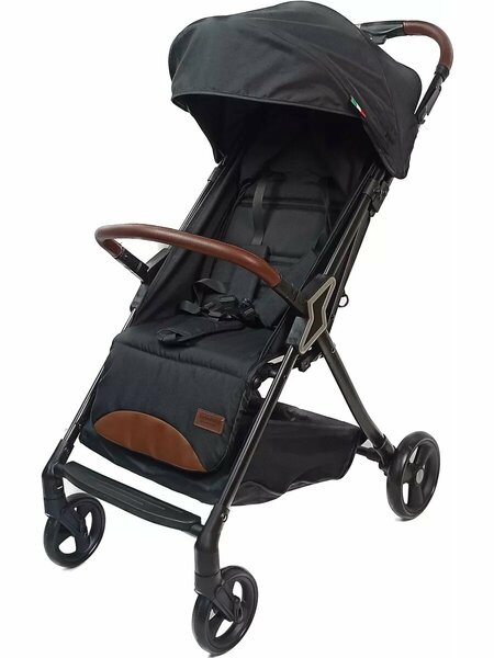 Прогулочная коляска Для детей от 6 мес до 3-4 лет ( до 17 кг) Система складывания с одной ручкой Регулируемая подставка для ног Регулируемый капюшон-навес. 4 положения спинки. 5-точечные ремни безопасности с мягкими накладками. 5-точечная система ремней безопасности Колеса Eva, передние 5,5-дюймовые, задние 6-дюймовые колеса. Легкая стальная рама. Кожаная ручка и бампер, корзина, дождевик и накидка для ног