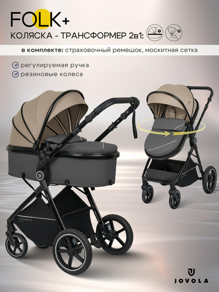 Коляска трансформер 2 в 1 для новорожденных Jovola Folk+, бежевый