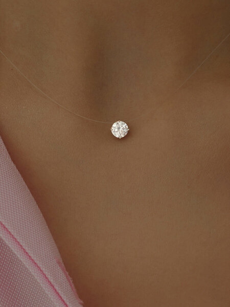 Мне нравится что леску не заметно и получается что на теле видно только сверкающую каплю. Унивкрсально под любую одежду.
