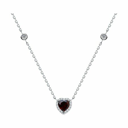 Колье из серебра с гранатом и фианитами. Изделие выполнено из серебра 925 пробы. Характеристики: 1 Гранат Сердце 6,00*6,00, 15 Фианит недраг Круг 1,00, 4 Фианит недраг Круг 2,50
