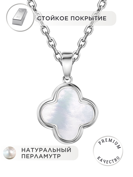 Колье клевер – это женское украшение на шею, которое включает в себя цепочку и подвеску в виде четырехлистного клевера. Это колье бижутерия с использованием натурального перламутра. Будет отличным подарком для подруги, жены или коллеги на день рождения, свадьбу или выпускной. Серебристая цепочка на шею выполнена из гипоаллергенного бижутерного сплава и покрыто металлом платиновой группы - родием, благодаря покрытию цепь не темнеет, не облезает. Длину можно регулировать от 50 до 55 см. Серебристая родированная подвеска клевер из белого перламутра придает изделию изящество и нежность, а также символизирует удачу и счастье благодаря своей форме. Белый перламутр делает ожерелье еще более элегантным и эффектным. Этот съемный кулон из натуральных камней привлекает внимание своей изысканной простотой и деликатностью. Кроме того, этот набор из подвески и цепочки серебро может стать частью повседневного образа, идеально под стиль олд мани (Old Money). Товар поставляется в красивой упаковке в виде фирменной коробки, что делает его прекрасным подарком для мамы, сестры или девушки. Доверьте свой выбор нам и подарите близким красивую бижутерию на шею, которая долго сохранит свою первоначальную красоту.