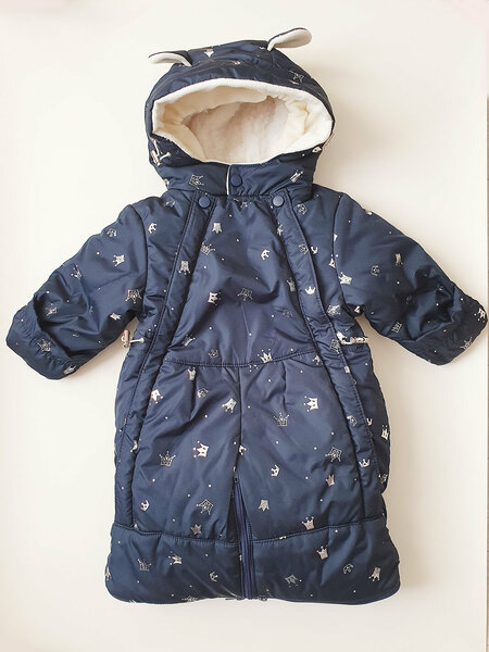 Комбинезон-трансформер с овчинной подстежкой подойдет как на прогулку осенью-весной, так и зимой. Подстежка съемная, на молнии. В комплекте идут варежки и теплые пинетки. В виде конверта комбинезон расчитан от 0 месяцев до 6, в виде комбинезон от 6 мес до 1-1,5 лет. Верх комбинезона выполнен из непромокаемой плащевой ткани, утеплен изософтом. Капюшон на кулиске, рукава внутри с трикотажными манжетами и дополнительными клапанами, благодаря чему малышу не будет поддувать. Две фронтальные молнии позволяют малыша быстро одевать.