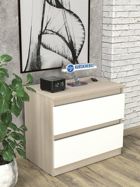 Комод №10. Компактный и стильный комод для хранения вещей отлично подойдет для прихожей или гостиной, гармонично будет смотреться в спальне или в квартире-студии. Изделие имеет два довольно просторных выдвижных ящиков для хранения аксессуаров, одежды, белья, книг, документов, косметики и других личных вещей. У комода в цвете "Белый иней" фасад текстурированный, материал имеет глубокие поры дерева. Изделие поставляется в разобранном виде. Хорошо упаковано в гофротару вместе с необходимой фурнитурой для сборки и подробной инструкцией. Мы как прямые производители мебели гарантируем вам высокое качество товара. Вся продукция сертифицирована.
