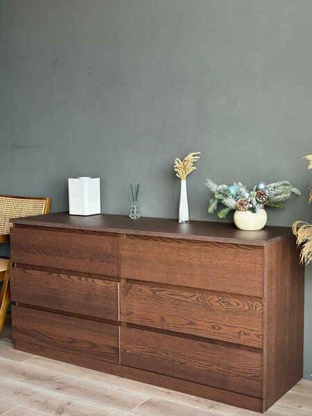 Представляем ваш идеальный организационный помощник – комод литен с ящиками для одежды. Этот стильный комод станет не только функциональным элементом вашей спальни, но и украшением интерьера. С размером 160х48х77 см, он прекрасно впишется в любую комнату, будь то спальня, гостиная или прихожая. Комод литен (мальм икеа) с шестью ящиками предоставляет достаточно места для хранения вещей, позволяя организовать пространство и поддерживать порядок. Каждое отделение вместительное и идеально подходит для хранения одежды, постельного белья или других предметов. Вы можете удобно рассортировать свои вещи и быстро находить то, что необходимо. Благодаря лаконичному дизайну и отделке из натурального шпона комод литен подходит для множества стилей оформления – от скандинавского до современного минимализма. Он станет прекрасным дополнением к мебели, выполненной в аналогичном стиле, и создаст атмосферу уюта и гармонии в вашем доме. Этот комод также отлично подойдёт для установки под телевизор, благодаря своей ширине и устойчивой конструкции. Вы сможете разместить на нем не только технику, но и красивые декоративные элементы или фотографии, придавая своему пространству индивидуальность. Если вы ищете качественный и красивый комод для одежды, то этот вариант станет отличным выбором. Комод в стиле мальм от IKEA сочетает в себе надежность, стиль и практичность, что делает его незаменимым предметом мебели в вашем интерьере.