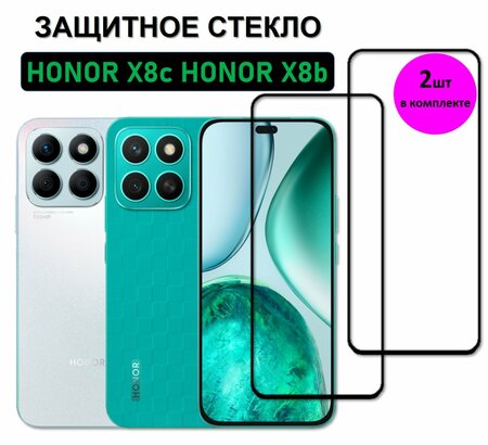 Надежная упаковка, стекло на экран на HONOR X8c / HONOR X8b ( Хонор Икс 8ц / Икс 8б ), сухая салфетка из микрофибры, влажная салфетка для обезжиривания и стикеры для удаления пыли