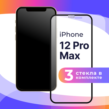 Комплект 3 шт. Защитное стекло для телефона Apple iPhone 12 Pro Max / Глянцевое противоударное стекло с олеофобным покрытием на смартфон Эпл Айфон 12 Про Макс