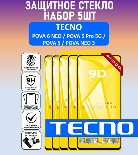 Закалённое стекло для Tecno POVA 6 Neo / TECNO POVA 5 Pro 5G / TECNO Pova 5 / Neo 3 ( Техно пова 6 Нео / пова 5 ) предназначено для защиты экрана при падении, от царапин и потёртостей. Олеофобное покрытие стекла обеспечивает хорошую чувствительность к касанию и не влияет на сенсорный отклик по всей поверхности дисплея, защищает от отпечатков пальцев и жирных пятен. Благодаря тому, что клеевой слой равномерно покрывает всю поверхность стекла, оно плотно приклеивается к экрану. Для удобства установки в комплекте идут влажная и сухая салфетки и стикер для удаления пылинок, если они случайно попадут при установке. Перед установкой стекла рекомендуем посмотреть видео-инструкцию, она поможет избежать ошибок и приклеить стекло ровно и качественно. Если же вопросы останутся, то Вы всегда можете воспользоваться инструкцией ниже. Инструкция по применению: 1. Очистите дисплей с помощью спиртовой салфетки. Убедитесь в том, что экран чист от пыли, грязи и отпечатков пальцев. 2. Протрите насухо дисплей второй салфеткой. 3. Снимите пленку с защитного стекла. 4. Наклейте защитное стекло на дисплей устройства клеевой стороной, выровняв его по краям и технологическим отверстиям. 5. Аккуратно нажмите по центру стекла. Благодаря адгезионным свойствам оно легко установится на дисплей. Мелкие воздушные пузыри пропадут в течение нескольких минут. Если воздух не уйдет, плавными движениями по стеклу его нужно вывести к краю