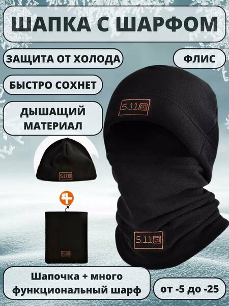 Шапка и снуд 5.11 Балаклава - стильный и теплый комплект для мужчин, который сочетает в себе модный дизайн и функциональность. Шапка изготовлена из высококачественных материалов, обеспечивая отличную теплоизоляцию и защиту от холодного ветра. Она облегает голову, не вызывая дискомфорта, и доступна в различных стилях для индивидуальных предпочтений каждого мужчины. Снуд является отличным дополнением к шапке, обеспечивая дополнительную защиту от холода. Изготовленный из мягкого и теплого флиса, он приятен к телу и может быть носимым в различных вариантах. Комплект шапки и снуда подходит для повседневного использования, зимних прогулок, активного отдыха и просто для того, чтобы быть стильным в холодное время года. Он также является отличным подарком для мужчины, которого вы цените. Этот комплект шапки и снуда не только для зимних дней, но и для осенних и весенних периодов, обеспечивая тепло и комфорт.