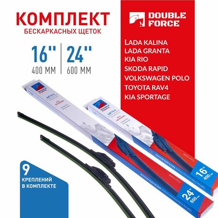 Вы ищете надежные и качественные бескаркасные щетки стеклоочистителя для вашего автомобиля? Тогда Double Force - это то, что вам нужно! Наш комплект бескаркасных щеток стеклоочистителя подходит для многих автомобилей, включая ВАЗ, Chery, Priora, Лада, Гранта, Kia, Ford, Focus, Polo, Chevrolet, Tiggo, Toyota, Нива, Solaris, Volkswagen, Renault, Opel, Hyundai, Subaru, Peugeot, Mazda, Mitsubishi, Honda, Jeep, Suzuki и многие другие. Double Force - это не просто набор щеток, это надежный помощник для вашего автомобиля. Наши щетки обеспечивают отличное качество очистки стекол от грязи, пыли и воды, обеспечивая вам отличную видимость на дороге в любую погоду. Комплект включает в себя все необходимые запчасти для быстрой и легкой установки на ваш автомобиль. Не откладывайте замену щеток стеклоочистителя на потом - это важный элемент безопасности на дороге. Покупайте Double Force прямо сейчас и наслаждайтесь отличным качеством и долговечностью наших товаров. Double Force - ваш надежный партнер в уходе за автомобилем. Покупайте качественные автозапчасти у нас и оставайтесь уверенными в безопасности и комфорте во время поездок. Не ждите, обновите свои щетки стеклоочистителя прямо сейчас с Double Force! Подходит для: CHERY: Tiggo 4 01.20 CHEVROLET: Captiva (KL1C) 10.06-02.11Captiva (KL1C, C140) 04.11 DATSUN: mi-DO 01.14 on-Do 01.14 DODGE: Caliber (P3) 01.06-01.12FAW: Besturn X80 02.17 FORD: Ranger (TKE) 09.11-08.15GEELY: Emgrand 7 | 01.16-12.18Emgrand EC7 01.10-12.16Vision (FC) 09.06-12.11KIA: Cerato Hatchback (FE) 03.04-11.09Cerato Sedan (FE) 03.04-11.09Rio IV (YB) RUS 01.17 Rio Hatchback X-line (FB) 10.17 Spectra (FB) 01.06-12.09Sportage (KM, JE) 08.04-05.10LADA BA3: Granta (2190) 10.11 Granta (2191) Liftback 08.14 Granta 08.18 Kalina (1118) 11.04-05.11Kalina Hatchback (1119) 07.06-03.13Kalina Hatchback (2192) 05.13-06.18Kalina Kombi (1117,2194) 07.07-06.13Kalina Kombi (2194) 05.13-06.18LANCIA: Ypsilon (843) 06.03-11.11OPEL: Antara (L07) 05.06-12.17Combo D (X12) 02.12-08.18PEUGEOT:2008 || 08.19 RENAULT: Latitude (L7) 02.11 Scenic I (JA) 01.96-04.03SKODA: Rapid (NK3) RUS 01.18-12.19SSANGYONG: Actyon 08.10-09.18Korando [CK] 07.10-08.19Stavic 07.13 Tivoli 04.15 XLV 04.16 Impreza Hatchback (GH, GR) 06.07-09.11Impreza Sedan (GE, GV) 06.07-09.11SUZUKI: Vitara (LY) 02.15 TOYOTA: Avensis (T25) 01.03-02.09Avensis Liftback (T25) 01.03-11.08Avensis Wagon (T25) 01.03-02.09Corolla (E12) 08.00-02.07Corolla Hatchback (E12) 11.01-12.07Corolla Wagon (E12) 08.00-02.07Picnic 09.96-05.01Prius (11) 12.97-08.03RAV4 (A3) 11.05-11.12NISSAN: Navara (D23) 10.15 X-Trail (T30) 06.01-03.07X-Trail (T31) 04.07-12.14