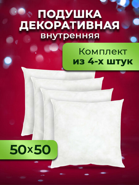 Подушки декоративные российского бренда OL-Tex это идеальный вариант для декорирования интерьера. Просто меняйте декоративные наволочки и создавайте новые акценты в интерьере! Мы изготовили внутренние подушки из мягкого нетканого белого спанбонда, и наполнили их легким силиконизорованным волокном. Подушки 50*50 сохраняют форму и объем на протяжении всего использования, не впитывают пыль и запахи, устойчивы к размножению бактерий. Они подходят для дома и дачи, спальни, гостиной и детской, путешествий и отдыха на природе. Легкие и упругие, эти изделия можно использовать как подушки для сна, подушки на диван или стулья. В комплекте 4 шт. Размер каждой подушки 50х50 см. Подушки 50х50 упакованы под пресс и принимают форму в течение нескольких часов. После распаковки рекомендуем слегка взбить и оставить на горизонтальной поверхности не менее чем на 40 минут. Рекомендации ПО уходу: машинная стирка в деликатном режиме при температуре не выше 30 градусов. Сушка при комнатной температуре. Оставьте изделие в расправленном виде на горизонтальной поверхности до полного высыхания или высушите в сушильной машине на низкотемпературном режиме. Мы не рекомендуем применять химические отбеливатели, гладить или отпаривать. Подушки декоративные 50 50 станут отличным подарком родным и близким к любому празднику! Другие модели интерьерных подушек, а также широкий выбор текстиля для дома представлены в нашем магазине. Создайте уют и неповторимый стиль вместе с Oltex! Залогом уюта и комфорта у вас в доме являются правильно подобранные предметы домашнего текстиля: подушки, одеяла, комплекты постельного белья, пледы, покрывала и т. д. При выборе подушки следует обратить внимание на следующие параметры: вид наполнителя: пуховые (перовые, пух-перо, гусиное, венгерское и канадское), полушерстяные или шерстяные (овечья, монгольский и австралийский верблюд, меринос), с растительным наполнителем (шелковые шелкопряд, из искусственных тканей, типа вискозы, бамбук, бамбуковое волокно, эвкалипт, эвкалиптовое волокно, лен), с синтетическим наполнителем (синтепон, полиэфирное волокно, холлофайбер, микрофибра, синтетический лебяжий пух). Подушка легко впишется в интерьер любой комнаты, будь то взрослая или детская комната вашей квартиры, а также послужит прекрасным подарком лучшей подруге, девушке, парню, маме, папе, сестре, брату, учителю, другу, родителям, воспитателю, коллеге на Новый год, 8 Марта, выпускной, День матери, 14 февраля, 23 Февраля, юбилей, годовщину.