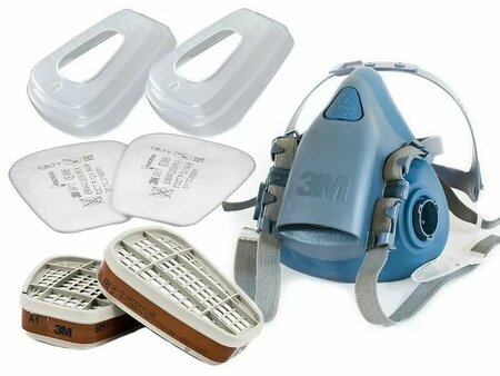 Готовый комплект 3М™ 7502 для малярных работ. Комплект включает в себя: полумаска 3М™ 7502, фильтры 3М™ 6051 (1 пара), предфильтры 3М™ 5911 (1 пара) и держатели предфильтра 3М™ 501 (1 пара). ►Покраска распылением, растворители (толуол, ксилол), смолы, лакокраски, адгезивы (клеи), также защищает от пыли, дыма, тумана, масляных и других жидких аэрозолей. Тип крепления фильтров: байонетный. Срок эксплуатации: зависит от интенсивности дыхания, концентрации вредных веществ, влажности рабочей среды. Смена фильтров производится при затруднении дыхания, либо при появлении запаха в подмасочном пространстве. Как хранить: фильтр имеет повышенные требования хранения связанные со свойствами активированного угля. Даже в нерабочем состоянии он активно впитывает из воздуха находящиеся в нем вредные вещества, тем самым пассивно исчерпывает свой ресурс. Чтобы не снижать эффективность работы сменного фильтра и качественно использовать его ресурс, храните только в неповрежденной герметичной упаковке или в условиях с минимальным присутствием влаги и воздуха.