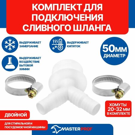 Комплект для подключения сливного шланга стиральной и посудомоечной машины двойной D 50 мм