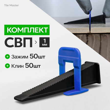 Комплект СВП TileMaster для укладки плитки зажимы 1 мм и клинья 50/50 шт.