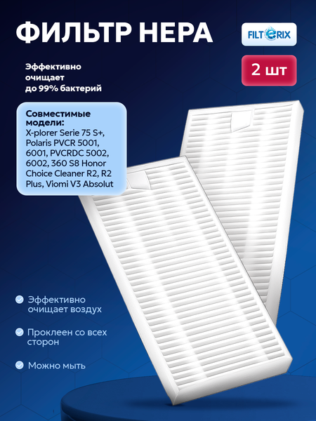 Эффективная очистка воздуха: фильтры обеспечивают очистку воздуха до 99,9%, значительно уменьшая попадание пыли, пыльцы, продуктов жизнедеятельности домашних животных и других аллергенов в воздух, которым вы дышите. Уровень фильтрации H12: комплект фильтров обеспечивает высокий уровень фильтрации, что гарантирует чистоту воздуха в вашем доме. В комплекте 2 фильтра, которые подходят для владельцев домашних животных и тех, кто заботится о своем здоровье. Выбирая комплект фильтров для робота пылесоса, вы получаете качественные аксессуары, которые обеспечат эффективную очистку воздуха и комфорт в вашем доме.