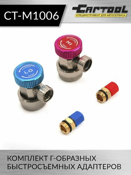 - Назначение набора адаптеров: используется для подключения к веткам высокого и низкого давления системы кондиционирования автомобиля. - Комплектация адаптеров для кондиционеров: набор включает два переходника для штуцеров низкого и высокого давления. - Особенность переходников для кондиционеров: в набор входят два переходных штуцера для кондиционера, которые можно использовать с разными типами шлангов.