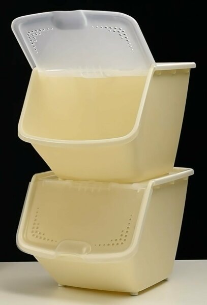 Универсальный комплект из двух пищевых контейнеров Альт-пласт с откидной крышками, объем 10,5 л. Контейнеры выполнены из прочного пищевого пластика, крышка с клапанами и защелками обеспечивает вентиляцию и сохранение свежести продуктов. Можно мыть в посудомойке. Контейнеры имеют прямоугольную форму и размер 33.7х23.8х21.7 см. Цвет слоновая кость и объем 10 500 мл. Отверстия обеспечивают вентиляцию. Контейнеры можно использовать для хранения овощей, фруктов и других продуктов. Они удобны для транспортировки и хранения на полке или в шкафу. Комплект из двух контейнеров идеально подходит для использования в качестве подарка или для личного использования.