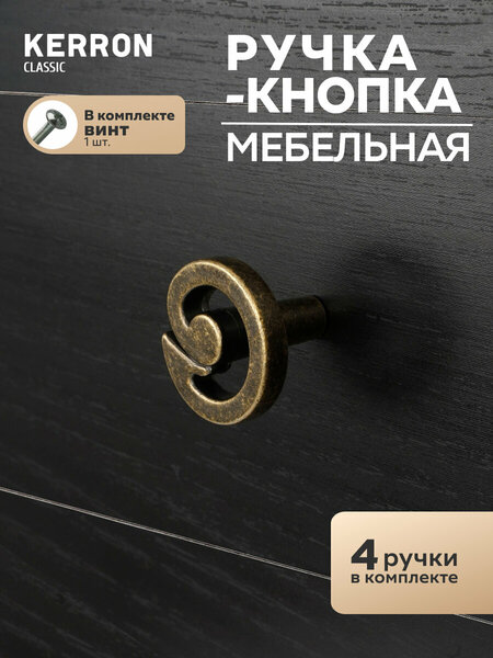 Комплект из 4 штук ручка-кнопок Kerron: стиль и функциональность Комплект из 4 штук ручка-кнопок Kerron выполнен из качественного материала - ЦАМ (сплав цинка, алюминия и меди), что обеспечивает прочность и долговечность изделий. Цвет товара - оксидированная бронза, что придает ему изысканный коричневый оттенок. Матовая поверхность ручки-кнопки Kerron придает ей элегантный и современный вид. Ручка-кнопка Kerron предназначена для установки на мебель и имеет установочный размер 1.0. Винтовое крепление обеспечивает надежное и прочное соединение ручки с мебелью. В комплекте с ручкой-кнопкой идет крепление, что облегчает процесс установки. Страна производства ручки-кнопки Kerron - Китай, что гарантирует качество и доступность товара. Если товар вам не подошел или не понравился, вы можете вернуть его в течение 7 календарных дней со дня получения. Выбирая комплект из 4 штук ручка-кнопок Kerron, вы получаете стильный и функциональный аксессуар для вашей мебели, который прослужит вам долгое время.