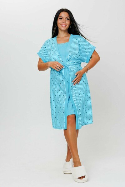 Комплект для беременных и кормящих мам - это удобный и стильный набор одежды, который идеально подойдет для женщин во время беременности и после родов. Он состоит из сорочки и пеньюара, выполненных из мягкого и приятного на ощупь кулирного полотна 100% хлопок. Этот женский комплект со свободным кроем позволит будущим мамам чувствовать себя комфортно в любое время года. Удобный халат в имеет пояс и карманы, что позволяет хранить мелочи или необходимые вещи сразу под рукой. Благодаря своему длинному крою, он подходит для высоких и невысоких женщин и позволяет носить его на любом сроке беременности. Этот халатик станет отличным дополнением к вашей домашней коллекции одежды. Ночная сорочка из комплекта имеет удобные клипсы на бретельках, которые отстегиваются, обеспечивая комфортное кормление вашего малыша. Мягкий и приятный на ощупь материал позволит вам чувствовать себя комфортно и уверенно во время кормления. Эта ночная сорочка на бретельках идеально подойдет для летнего и осеннего периода. Комплект для беременных и кормящих мам изготовлен из кулирного полотна, которое отличается высоким качеством и долговечностью. 100% хлопок обеспечивает максимальную мягкость и комфорт при ношении. К тому же, все вещи из этого комплекта можно легко стирать и ухаживать за ними. Этот комплект для беременных и кормящих мам также идеально подойдет для посещения роддома. Вы можете взять его с собой, чтобы быть уверенными в том, что у вас есть удобная и стильная одежда, в которой вы будете чувствовать себя комфортно и удобно. Очаруйте окружающих во время беременности и после родов с помощью этого красивого и удобного комплекта для беременных и кормящих мам. Он подойдет для женщин всех размеров, включая большие размеры. Этот комплект обеспечит вам комфорт, стиль и качество.