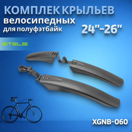 Комплект крыльев 24"- 26" XGNB-060, полуфэт, переднее крыло с креплением за внутреннюю поверхность штока вилки, заднее c креплением за подседельный палец, пластиковые, чёрные/610244