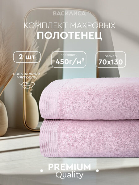 Полотенце банное махровое премиум сегмента 2 шт. от Василиса - мягкие и пушистые, они быстро сохнут и отлично впитывают влагу. Подходят для ежедневного использования после душа, бани или ванны, идеальны для посещения бассейна. Кроме того они станут ярким дополнением Вашей ванной комнаты, благодаря достаточно широкой гамме цветовых оттенков. Набор включает в себя два больших банных полотенца для тела размером 70х130 см. При производстве этих полотенец используется сырье самого высокого качества: безопасные красители и натуральный хлопок, а так же двойная петля - которая обеспечивает еще более улучшенную впитываемость и мягкость. Среди основных достоинств это приятная мягкая текстура, износостойкость, благодаря повышенной плотности 450 гр/м2 и стойкий к стирке цвет. Комплект махровых полотенец послужит отличным подарком для ваших близких. Если вы ищете идеальный подарок для мужчины или женщины или просто хотите побаловать себя роскошными аксессуарами для дома, этот набор полотенец - отличный выбор. Махровые изделия рекомендуется стирать перед первым применением. Во время стирки удалятся излишние ворсинки, которые прилипли в процессе производства, а сами полотенца станут более мягкими и пушистыми. Набор полотенец для ванной от Василиса станет отличным вариантом подарка мужу, подруге или сестре, маме или папе, бабушке или дедушке. Не упустите шанс сделать особенный подарок маме на День Матери, учителю на 1 сентября или День Учителя, подарок близким на Новый год, подарок любимым на 23 февраля или на 8 Марта, подарок друзьям на новоселье или на День рождения. Желаем приятных покупок! Заказывайте полотенце Василиса!