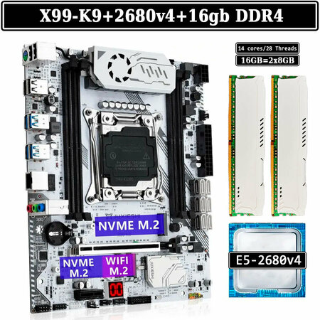 Новый комплект для сборки игрового компьютера Комплект включает в себя: ------------------------------------ ✓ - Новая материнская плата Juxieshi X99-K9 LGA 2011-3, порт M.2 nvme - 2шт, 4 слота под оперативную память DDR4, sata 3.0 в количестве 6шт, usb 3.0, M.2 Wi-Fi ✓ - Процессор Intel Xeon E5-2680v4 - [14 Cores / 28 TH] (3.3GHz) ✓ - Серверная оперативная память DDR4 ECC частотой 2133/2400Mhz ------------------------------------ В состав комплекта так же входит фирменная упаковка, Sata-кабель, заглушка (задняя планка), переходное кольцо с болтами для установки кулера, термопаста и батарейка CR2032 Присутствуют следы эксплуатации на процессоре и оперативной памяти Каждый комплект запускается и проверяется на дефекты, проверяется звук, сеть, сата порты, м2 порт, юсб порты, после тестируется в стресс тесте и пакуется Данный комплект способен раскрыть потенциал видеокарт: GTX 1050 Ti, GTX 1060 3GB, GTX 1060 6GB, GTX 1070 Ti, GTX 1080 Ti, GTX 1650 Super, GTX 1660 Super, RTX 2060 Super, RTX 2070, RTX 3060, RX 570, RX 580, RX 590, RX 5500 XT, RX 5600 XT, RX 5700 XT, RX 6600