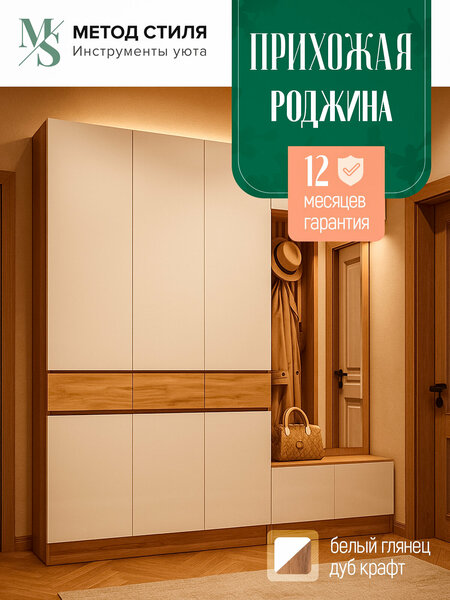 Прихожая - это помещение, расположенное на входе в дом или квартиру, где люди снимают и надевают верхнюю одежду, обувь и аксессуары, а также хранят некоторые предметы. Комплект мебели для прихожей Роджина выполнен из качественного ЛДСП в современном стиле. Модульная прихожая Роджина, материал корпуса: ЛДСП; материал фасада: ЛДСП представлена в нашем магазине в нескольких размерах и цветовых решениях. В состав данного комплекта входит: S-MF0000111 Прихожая Роджина (Дуб крафт/Белый глянец) 1000х2400х520; S-MF0000114 Прихожая Роджина Шкаф 3-х ств (Дуб крафт/Белый глянец) 1500х2400х520. фурнитура, схема сборки.