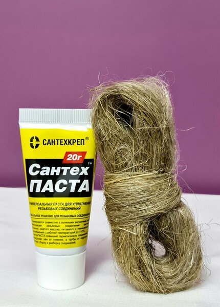 Комплект монтажный паста уплотнительная Сантехпаста 20 гр. лен сантехнический 14 гр. Ищете надежный способ обеспечить герметичность резьбовых соединений в системах отопления и водоснабжения? Тогда паста для уплотнения резьбовых соединений "СантехПаста" именно то, что вам нужно! Эта универсальная паста сантехническая специально разработана для герметизации соединений в системах отопления, питьевого и бытового водоснабжения и сжатого воздуха. Сантехпаста идеально подходит для использования с льняными волокнами и повышает герметичность соединений, предотвращает гниение льна и коррозию труб, а также облегчает сборку и разборку соединений. Преимущества пасты "СантехПаста" очевидны: она проста в использовании и сохраняет свои свойства даже после заморозки. Рабочее давление до 8 атм и температура до 110°C делают пасту надежным выбором для большинства аварийных и плановых ремонтных работ. СантехПаста поставляется в тубе 20 грамм и лен сантехнический 14 грамм, что упрощает хранение и использование, а руководство по применению поможет использовать ее правильно. Для достижения лучшего результата необходимо зачистить резьбу от ржавчины металлической щеткой. Затем нужно смазать подходящий пучок льняных волокон пастой так, чтобы он оп пропитался полностью, а затем плотно намотать полученный пучок по направлению резьбы. После этого можно собирать соединение. Сохраните ваш дом и системы отопления от протечек и других проблем с пастой для уплотнения резьбовых соединений "СантехПаста". Условия хранения: 25°C при относительной влажности 75%. Допускается замораживание.