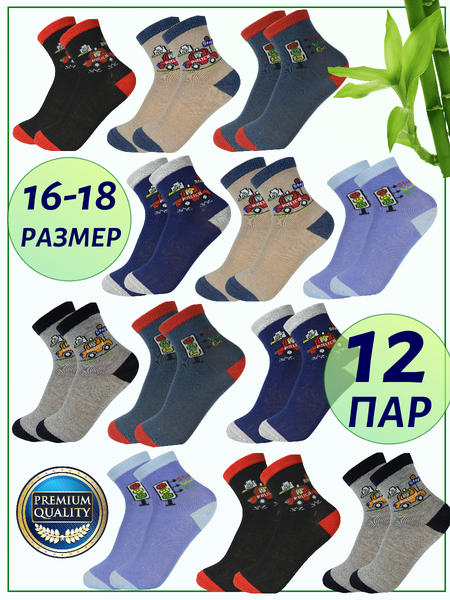 Комплект детских носков производитель Фенна. Носки для мальчиков, в упаковке 12 пар. Отличное соотношение: цена – качество. Носки с эластичной резинкой не сдавливают ножки ребенка, имеют мягкий натуральный состав, благодаря чему кожа дышит. Разноцветный набор носков с привлекательным рисунком для мальчика выполнен из хлопка с добавлением эластичных волокон, которые не дают носкам сползать. Детские носочки эффектно смотрятся на ножках ребенка. Носки в садик, для дома, для повседневных прогулок. Носки для детей хорошо стираются и не теряют свой привлекательности даже после многочисленных стирок. Покупайте детские носки для мальчиков и Вы будете довольны покупкой.