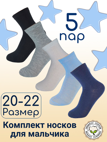 Комплект детских носков производитель Фенна. Носки для мальчиков - стильные, комфортные и мягкие. Имеют натуральный состав, в таких носках нога дышит. Однотонные носки для мальчиков, в упаковке 5 пар. Отличное соотношение: цена – качество. Бесшовные носки с эластичной резинкой обеспечивают нормальную посадку, красиво облегают ногу не сдавливая ножки ребенка. Набор носков для мальчика выполнен из хлопка с добавлением эластичных волокон, которые не дают носкам сползать. Детские носочки эффектно смотрятся на ножках ребенка. Носки в садик, в школу, для дома, для спорта, для повседневных прогулок. Носки для детей хорошо стираются и не теряют свой привлекательности даже после многочисленных стирок. Покупайте детские носки для мальчиков и Вы будете довольны покупкой.
