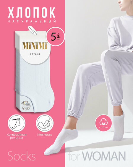 Носки женские набор - 5 пар. Носки женские короткие MiNiMi COTONE 1101 выполнены из мягкого хлопка. Материал обладает высокой воздухопроницаемостью, отлично впитывает влагу и подходит даже для самой чувствительной кожи. Эластан в составе обеспечивает превосходное облегание. Кеттельный (плоский) шов на мыске и удобная резинка создают дополнительный комфорт. Женские носки спортивные, легкие и удобные, идеально сочетаются с кедами, кроссовками, балетками или слипонами, отлично подойдут на каждый день и для спорта. Благодаря яркой палитре цветов, это не только функциональный предмет гардероба, но и стильный аксессуар для создания оригинального образа. Носки женские MiNiMi COTONE 1101 - идеальный подарок женщине, девушке, подруге на любой праздник. Цвета: морская волна - Acqua; лазурный - Azzurro; белый - Bianco; желтый - Giallo; лиловый - Lilla; черный - Nero; оранжевый - Orange; розовый - Rosa; бирюзовый - Turchese; зеленый - Verde.