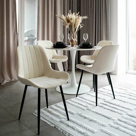 Комплект обеденных стульев для кухни 4 шт мягкий со спинкой, белые Комплект состоит из четырех мягких стульев с велюровой обивкой, которые станут отличным дополнением к вашему обеденному столу. Стулья оснащены ножками, что обеспечивает устойчивость и надежность конструкции. Основание выполнено из фанеры, что гарантирует прочность и долговечность изделия. Высота каждого стула составляет 82 см, высота сиденья – 45 см, а глубина – 42 см. Ширина каждого стула – 50 см. Особенностью этих стульев является мягкое сиденье, которое обеспечивает комфорт и удобство во время использования. Комплект стульев предназначен для использования в офисе, но также может быть использован и в домашних условиях. Выбирая этот комплект стульев, вы получаете не только стильный и современный дизайн, но и комфорт, надежность и функциональность, которые сделают вашу кухню еще уютнее и приятнее.