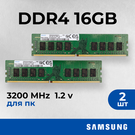 Описание комплекта оперативной памяти Samsung 32 ГБ DDR4 3200 МГц 1.2V DIMM (2 шт. по 16 ГБ) Комплект оперативной памяти Samsung 32 ГБ DDR4 3200 МГц 1.2V DIMM (2 шт. по 16 ГБ) - это высокопроизводительное решение для настольных компьютеров, предназначенное для требовательных пользователей, которым необходима максимальная скорость и отзывчивость системы. Этот комплект оперативной памяти DDR4 идеально подходит для профессиональной работы с графикой и видео, запуска ресурсоемких игр, стриминга, а также для любых задач, требующих большого объема оперативной памяти и высокой скорости ее обработки. Если вам нужна мощная ддр4 оперативная память для пк, это отличный вариант. Общее описание комплекта: Этот комплект состоит из двух модулей оперативной памяти, что позволяет использовать двухканальный режим работы. Двухканальный режим удваивает пропускную способность памяти, значительно повышая производительность по сравнению с одноканальным режимом. Основные характеристики (на модуль): Тип памяти: DDR4 оперативная память DIMM (Dual In-Line Memory Module) - стандартный форм-фактор для настольных компьютеров. Объем памяти (одного модуля): Оперативная память 16 гб - достаточный объем для большинства современных задач, включая игры, редактирование фото и видео. Отличное решение, если вы ищете оперативная память ddr4 16gb. Общий объем памяти (комплекта): Оперативная память 32 гб (2 x 16 ГБ) - обеспечивает огромный объем, достаточный для самых требовательных задач и многозадачной работы с большим количеством приложений одновременно. Частота: 3200 МГц (PC4-25600) - обеспечивает высокую скорость передачи данных между памятью и процессором, ускоряя работу приложений и игр. Напряжение: 1.2V - Низкое напряжение обеспечивает энергоэффективность и снижает тепловыделение, что положительно сказывается на стабильности работы системы. Производитель: Samsung - мировой лидер в производстве микросхем памяти, гарантирующий высокое качество и надежность. Рекомендуется использовать модули одного производителя и одной модели для максимальной совместимости. Форм-фактор: DIMM - стандартный для настольных компьютеров, НЕ подходит для ноутбуков. Эта оперативная память для пк, не путайте с SODIMM для ноутбуков! Назначение: Предназначен для повышения производительности настольных компьютеров, используемых для ресурсоемких задач, таких как игры, редактирование видео, работа с графикой, стриминг и другие. Преимущества: Максимальная производительность: Высокая частота, большой объем и двухканальный режим обеспечивают максимальную скорость и отзывчивость системы при выполнении самых требовательных задач. Энергоэффективность: Низкое напряжение снижает энергопотребление и тепловыделение, что положительно сказывается на стабильности и долговечности системы. Надежность: Продукция Samsung известна своим качеством и долговечностью. Совместимость: Стандарт DDR4 DIMM обеспечивает широкую совместимость с современными материнскими платами, поддерживающими оперативную память ddr4. Совместимые бренды (потенциально): KINGSTON FURY, G.SKILL, KINGSTON, PATRIOT MEMORY, ADATA, SAMSUNG, CRUCIAL, HYPERX, TEAM GROUP, SILICON POWER, MICRON, KINGSPEC, HYNIX, FOXLINE, APACER. Для максимальной совместимости рекомендуется использовать модули одного производителя и одной модели. Совместимые партномера (Комплект 2x16GB DDR4 3200MHz DIMM): Убедитесь, что приобретаете комплект из двух модулей. Некоторые партномера могут относи